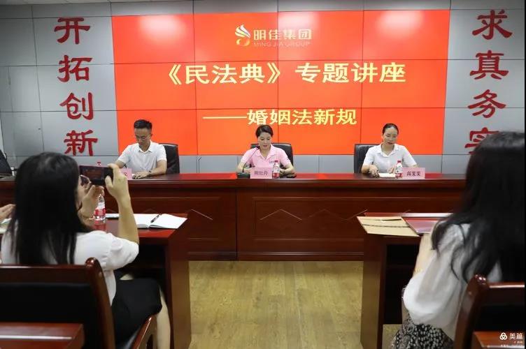 為了引導(dǎo)公司廣大女職工樹(shù)立正確的婚姻觀、家庭觀,有利于切實(shí)破除婚姻家庭領(lǐng)域中的封建思想和陳規(guī)陋習(xí),遏制家庭暴力的發(fā)展態(tài)勢(shì)。2021年7月5日16時(shí),明佳集團(tuán)婦聯(lián)在公司工會(huì)的大力支持下組織開(kāi)展了《民法典》婚姻法新規(guī)專題講座,講座由海南錦瀚律師事務(wù)所王亞文律師為70多名女職工授課。